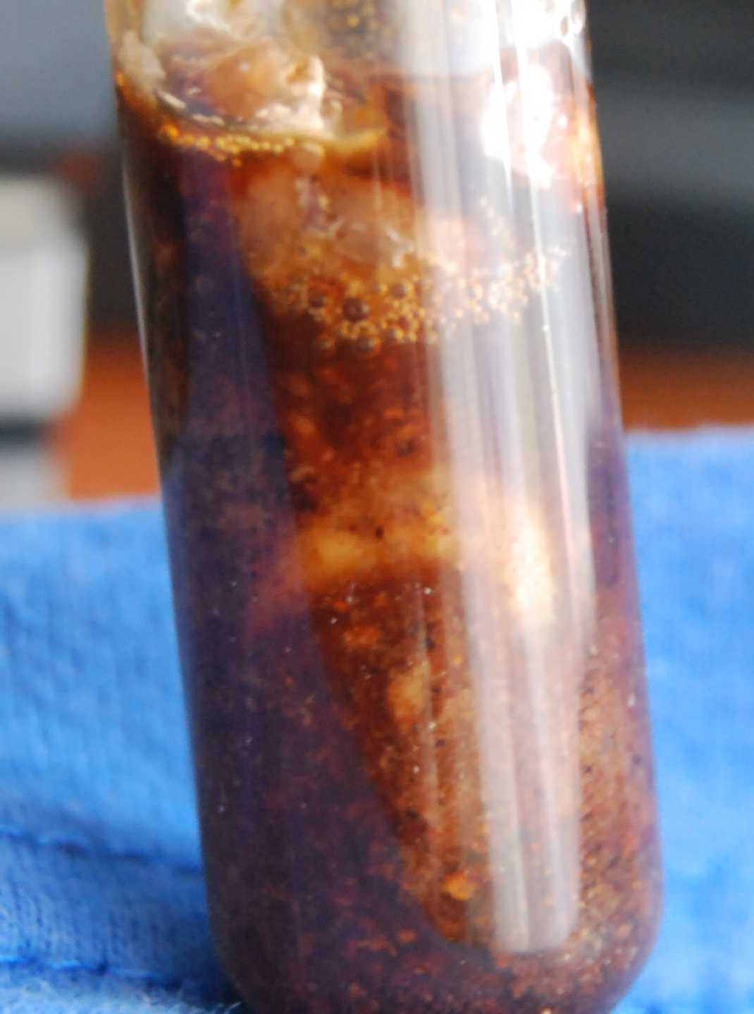 Najlepsze drzewa z wyciekającym sokiem to dęby z żerowiskami trociniarek, przezierników, kasztanowce z naturalnymi uszkodzeniami lub powstałymi w wyniku tzw. szczepień. Takie miejsca potrafią być trwałe przez wiele lat. Larw poszukujemy w samym wycieku soku jak i w szczelinach kory, pod korą. Najczęściej konieczne jest dłubanie nożem pod fragmentami obumierającej kory. W takich wyciekach najczęściej znajdujemy larwy Brachyopa, Sphiximorpha, ale i kilka innych rodzajów. Takie larwy delikatnie pobieramy do fiolek z niewielka ilością substratu, do innej fiolki zabieramy większą ilość materiału. Warto rozgrzebać powierzchnię ziemi u podstawy pnia gdzie mogą znajdować się już poczwarki. W warunkach domowych tworzymy bardzo prosta hodowlarkę. Wybieramy większa szklaną fiolkę jak na fotografii. Na dnie fiolki umieszczamy pobrany w terenie substrat, jeśli jest to konieczne to dodajemy trochę wody tak by konsystencja była podobna do tej w terenie. Wpuszczamy larwy. Larw może być wiele, byle by nie więcej niż substratu :!: . Po kilku dniach należy dokarmić nasze larwy. Ja stosuje bardzo łatwo dostępne przez cały rok źródło substratu, gnijącego ziemniaka. Do fiolki za każdym razem dodajemy niewielka ilość ziemniaka zeskrobaną z powierzchni graniczącej z jeszcze żywą jego częścią.Fiolkę umieszczamy w miejscu ciemnym, najlepiej w szufladzie i co kilka dni sprawdzamy stan substratu. Ważne jest by zapewnić larwą odpowiednią przestrzeń do opuszczenia substratu.Gdy uzyskamy bobówki najlepiej przenieś je do słoika z wilgotną ziemią na dnie. Ta metoda jet odpowiednia dla większości larw.