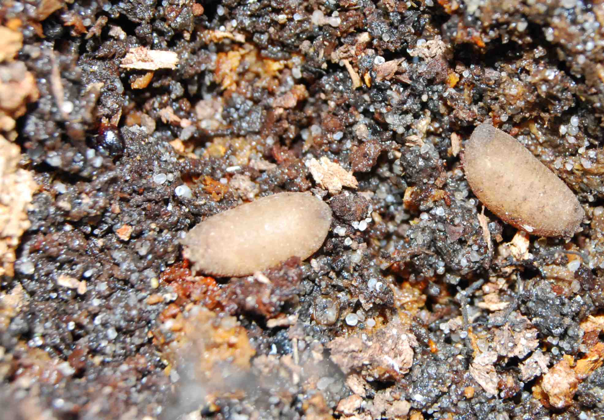 Larwy najczęściej opuszczają miejsce żerowania w celu przepoczwarzenia.Te znaleziono około 2-3 cm pod powierzchnią lekkiej gleby(7.09.2009)