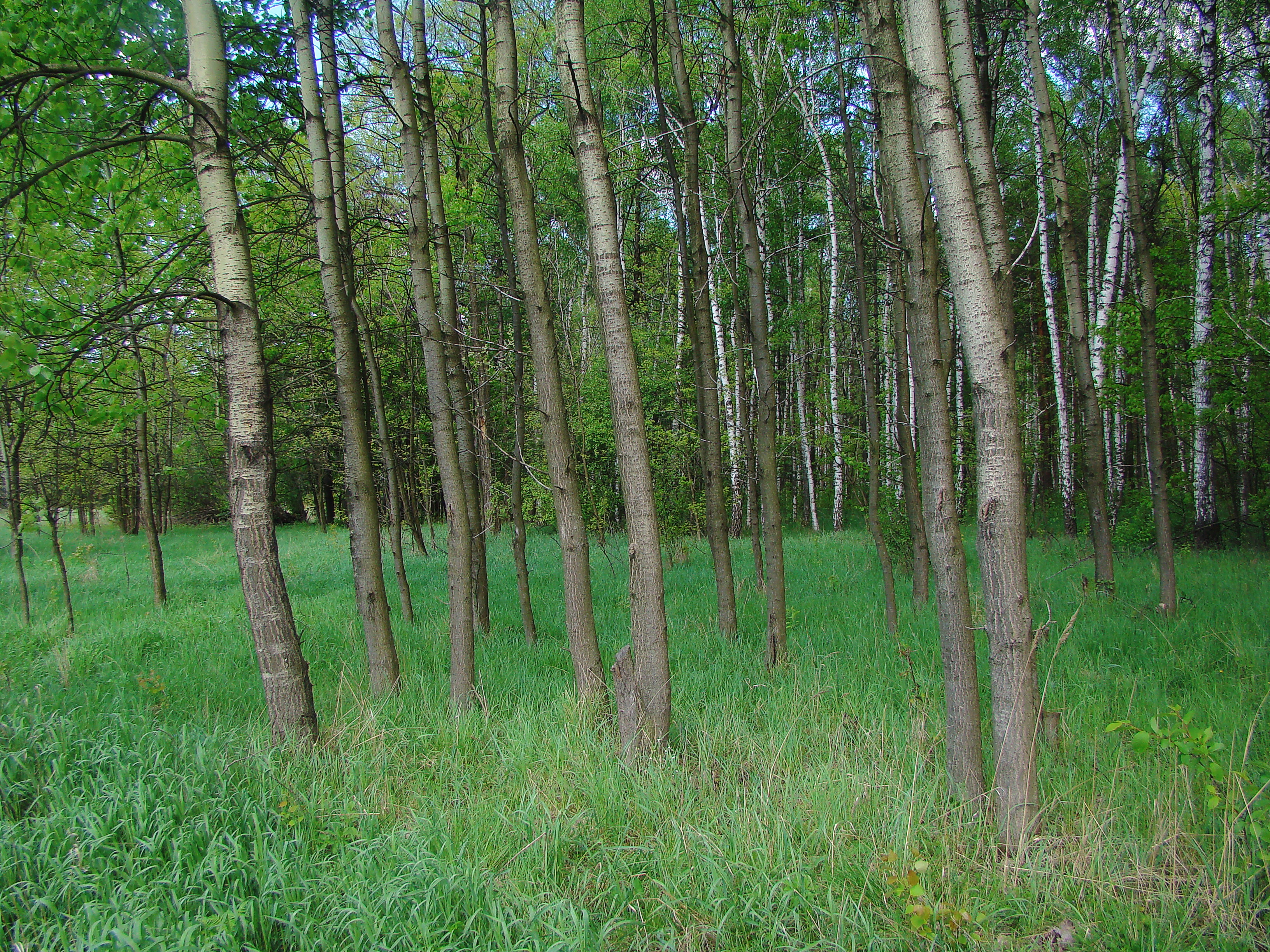 Lasy mieszane z dużym udziałem sosny, które wczoraj odwiedziłem, znajdują się kilkanaście km. na południe od Pabianic, kolo Śladkowic. Poradził mi je uprzejmy wędkarz znad Grabi koło Ldzania, gdzie było wprawdzie malowniczo, ale mało obiecująco. Brak starych drzew.
