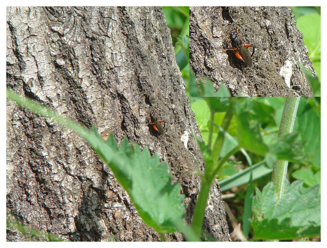 Latały rownież co najmniej dwa gatunki, ktore nie zamierzaly przysiaść ani na chwilę na żadnej kłodzie, chętnie za to siadały na mojej osobie. Jeden na spodniach, drugi na rekach; pozwolił się nawet przekładać z prawej do lewej. Pierwszy raz spotkałem "oswojonego" bzyga.