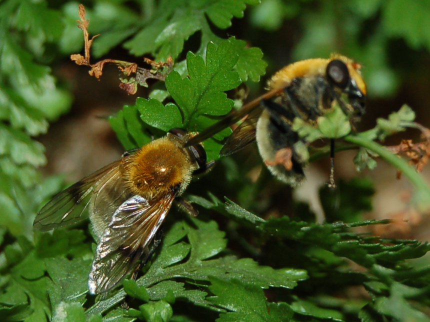 Piękny bzyg jak w temacie. Mokre lat sprzyja rozwojowi takich m.in. gatunków. Dwie samice stwierdzone przeze mnie przed paroma dniami w Redzie Pieleszewie po 4 latach poszukiwania w ogóle. To dla mnie duża satysfakcja i nowe zupełnie stanowiska. Mam informację także od Tomka Grzegorczyka, że złowił jedną sztukę ok. trzy tygodnie temu w Gdyni Leszczynkach. Bardzo trudne do odróżnienia od trzmieli (które kręcą się tuż obok) nawet dla wprawnego oka - dlatego moim zdaniem są raczej rzadko spotykane. Nawet lot mają identycznie ociężały i powolny. Szukać należy na obrzeżach dolin rzecznych tuż na skraju lasu i pobliskich polanach śródleśnych - tak przynajmniej wyglądały moje dotychczasowe spotkania z tym bzygiem.